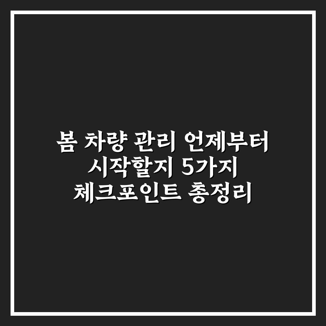 봄 차량 관리 언제부터 시작할지 5가지 체크포인트 총정리 2026년 03월 20일 작성자: 인포 봄 차량 관리 언제부터 시작해야 할지 고민하는 분들을 위해 필수 체크포인트와 시기별 준비 방법을 상세히 안내합니다