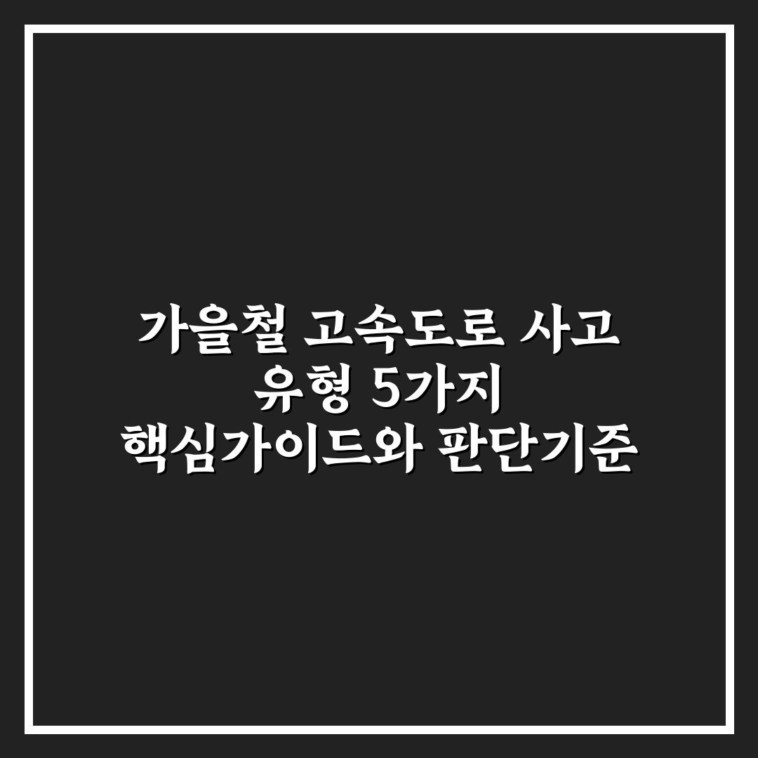 가을철 고속도로 사고 유형 5가지 핵심가이드와 판단기준 2026년 03월 16일 작성자: 인포 가을철 고속도로 사고 유형별 주요 특징과 판단 기준을 쉽게 이해하고 안전 운전에 도움이 되는 정보를 제공합니다
