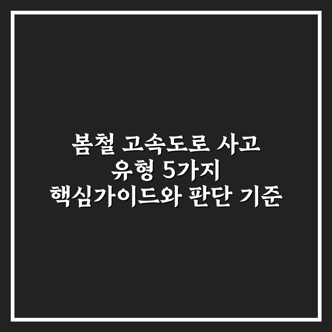 봄철 고속도로 사고 유형 5가지 핵심가이드와 판단 기준 2026년 03월 16일 작성자: 인포 봄철 고속도로 사고 유형별 주요 원인과 판단 기준을 알아보고 안전 운전에 도움이 되는 실질적인 정보를 제공합니다