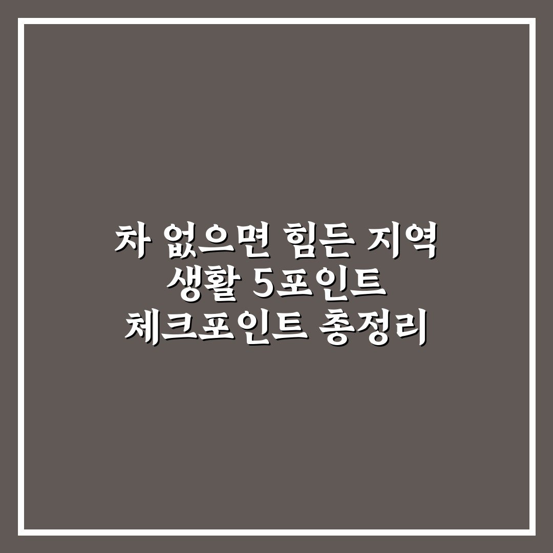 차 없으면 힘든 지역 생활 5포인트 체크포인트 총정리 2026년 03월 21일 작성자: 인포 차 없으면 힘든 지역 생활에서 꼭 알아야 할 5가지 핵심 포인트를 정리해 실생활에 도움이 되는 정보를 제공합니다