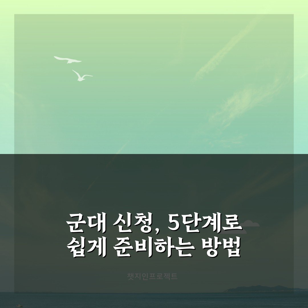 군대 신청을 5단계로 쉽게 준비하는 방법을 알아보세요. 체계적인 가이드로 스트레스 없이 군 입대를 준비할 수 있습니다!