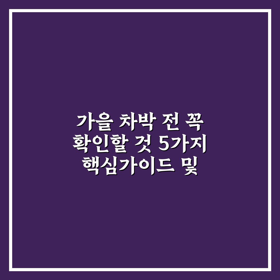 가을 차박 전 꼭 확인할 것과 관련된 필수 준비사항과 체크포인트를 알아보고 안전하고 쾌적한 차박을 위한 핵심 정보를 제공합니다