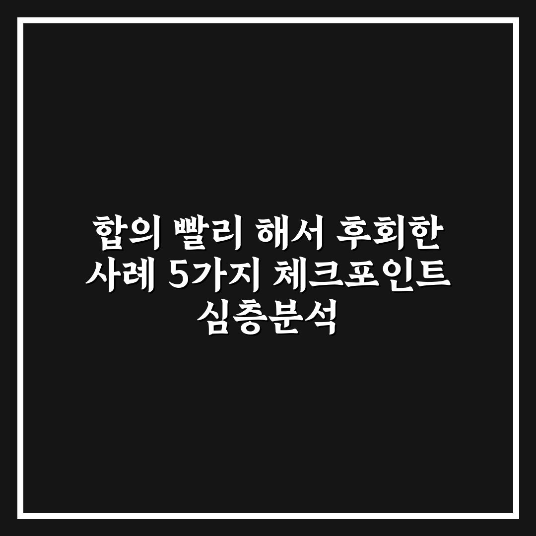 합의 빨리 해서 후회한 사례 5가지 체크포인트 심층분석 2026년 04월 02일 작성자: 인포 합의 빨리 해서 후회한 사례를 통해 놓치기 쉬운 체크포인트를 심층 분석하고 현명한 결정 방법을 제시합니다