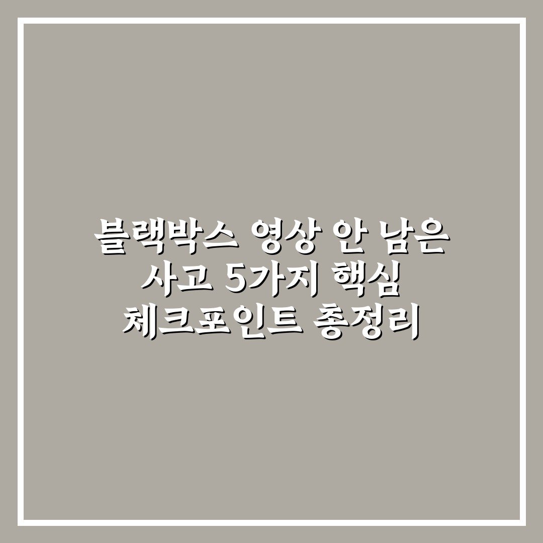 블랙박스 영상 안 남은 사고 5가지 핵심 체크포인트 총정리 2026년 03월 19일 작성자: 인포 블랙박스 영상 안 남은 사고 발생 시 꼭 확인해야 할 5가지 핵심 체크포인트를 정리해 안전한 대처법을 안내합니다