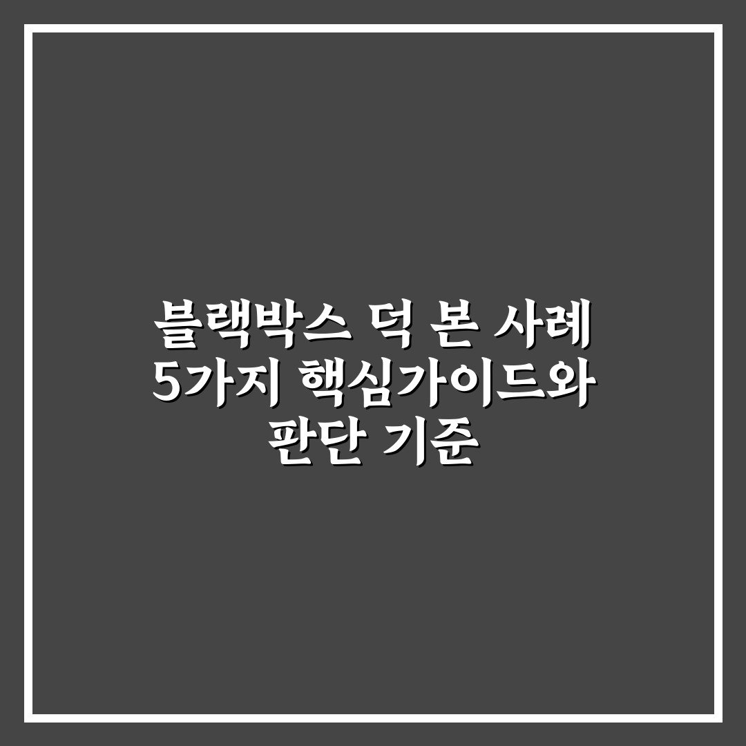 블랙박스 덕 본 사례 5가지 핵심가이드와 판단 기준 2026년 03월 21일 작성자: 인포 블랙박스 덕 본 사례를 통해 실제 상황별 판단 기준과 핵심 가이드를 제시하며 안전 운전과 사고 대응에 도움이 되는 정보를 제공합니다