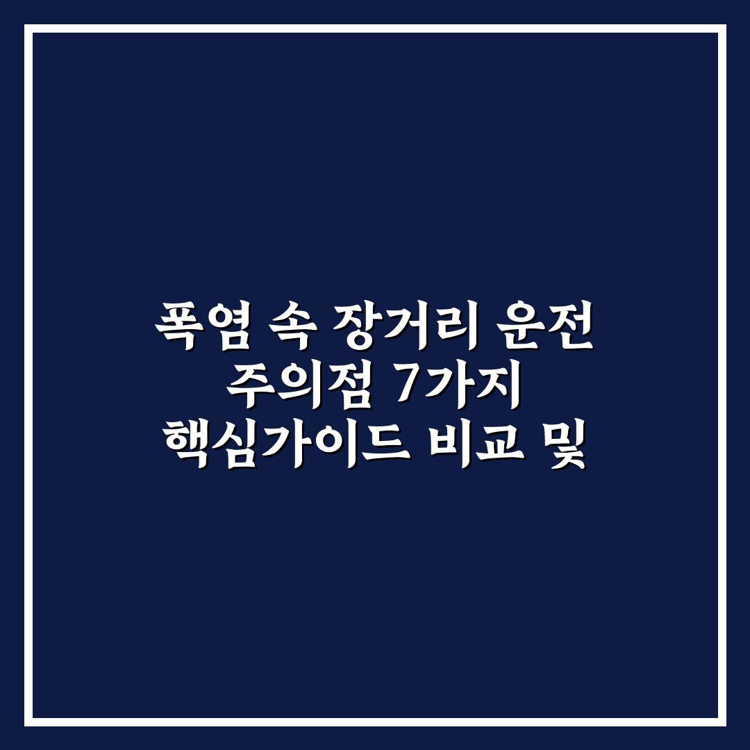 폭염 속 장거리 운전 주의점 7가지 핵심가이드 비교 및 총정리 2026년 03월 23일 작성자: 인포 폭염 속 장거리 운전 주의점을 체계적으로 정리해 안전하고 쾌적한 주행을 위한 핵심 팁과 대비책을 제공합니다