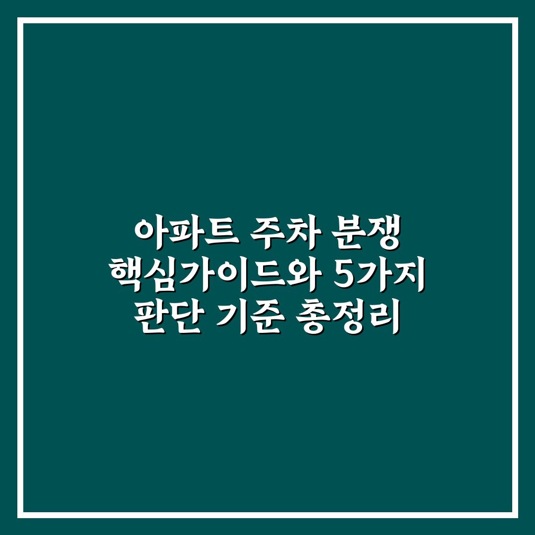 아파트 주차 분쟁 핵심가이드와 5가지 판단 기준 총정리 2026년 04월 13일 작성자: 인포 아파트 주차 분쟁의 주요 원인과 해결 방법을 다각도로 분석하고 5가지 판단 기준을 통해 현명한 대처법을 제공합니다
