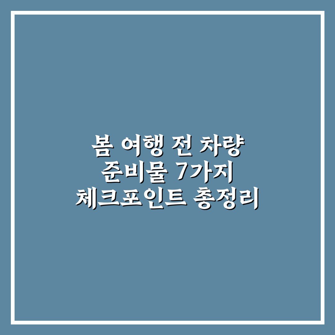 봄 여행 전 차량 준비물 7가지 체크포인트 총정리 2026년 03월 19일 작성자: 인포 봄 여행 전 차량 준비물에 꼭 필요한 7가지 체크포인트를 정리해 안전하고 편안한 여행을 위한 필수 정보를 제공합니다
