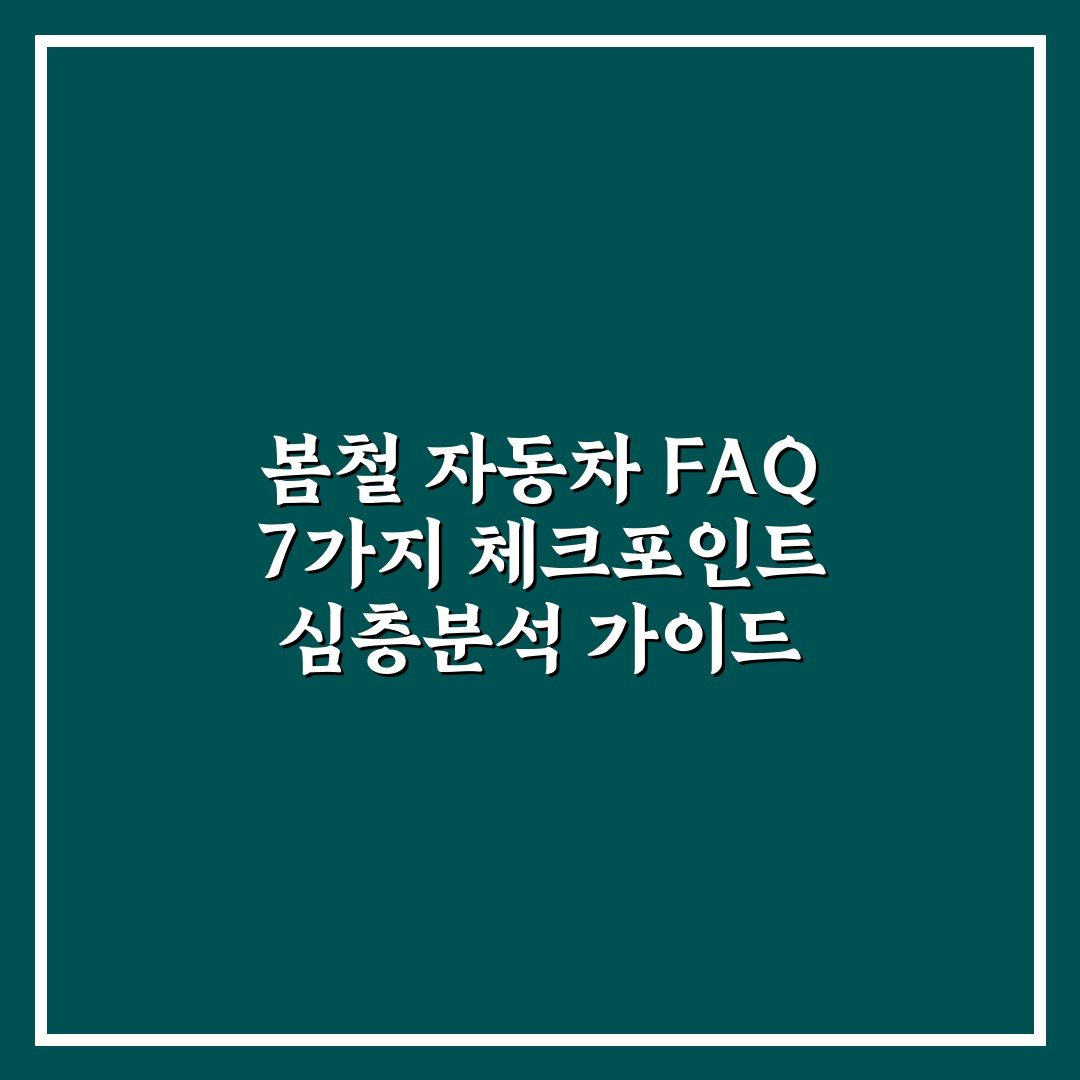봄철 자동차 FAQ 7가지 체크포인트 심층분석 가이드 2026년 04월 05일 작성자: 인포 봄철 자동차 FAQ를 통해 계절별 점검 항목과 관리 팁을 확인하고 안전하고 쾌적한 운전을 위한 핵심 정보를 얻으세요