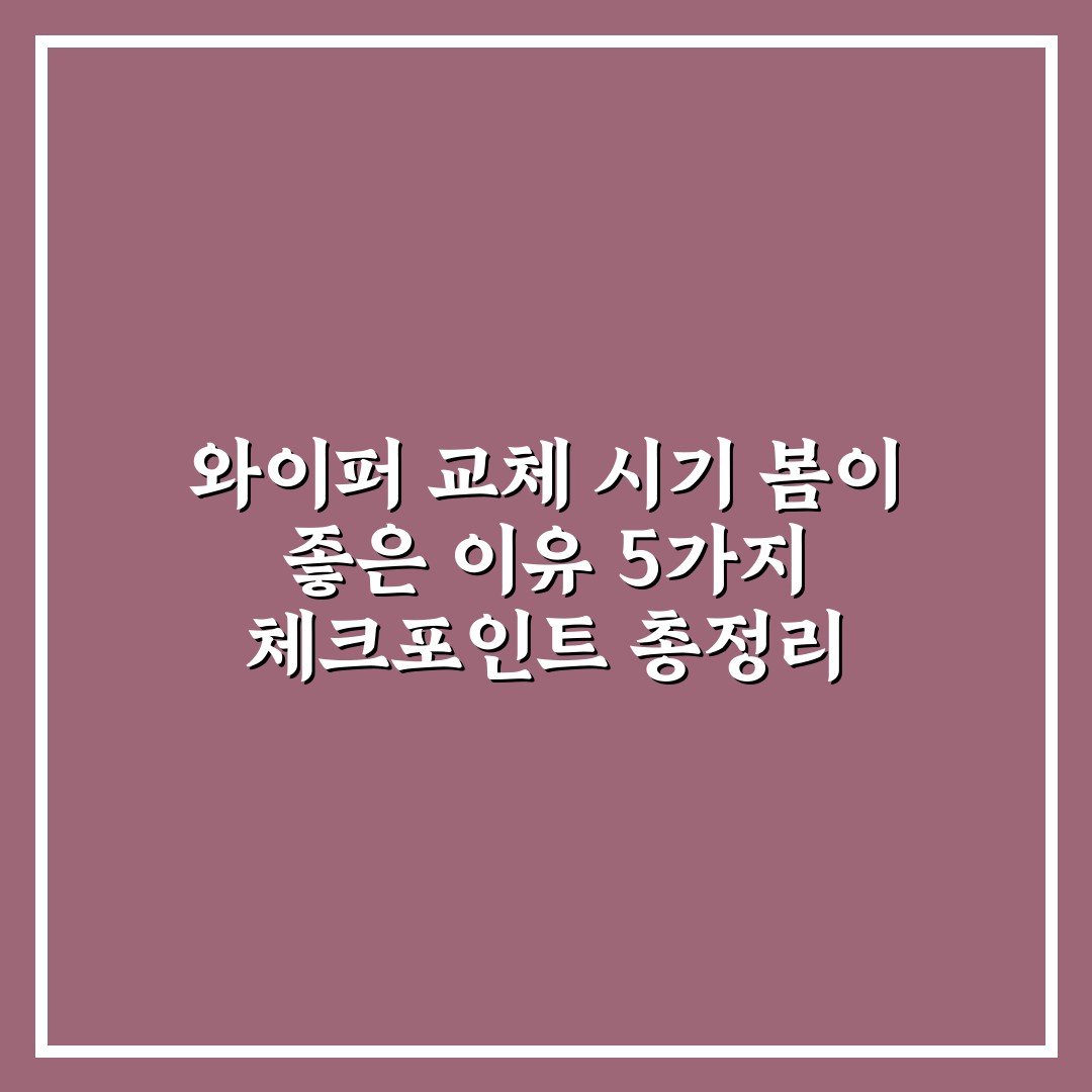 와이퍼 교체 시기 봄이 좋은 이유 5가지 체크포인트 총정리 2026년 03월 18일 작성자: 인포 와이퍼 교체 시기 봄이 좋은 이유와 함께 계절 변화에 맞춘 점검 포인트를 확인해 안전한 주행 환경을 준비하세요