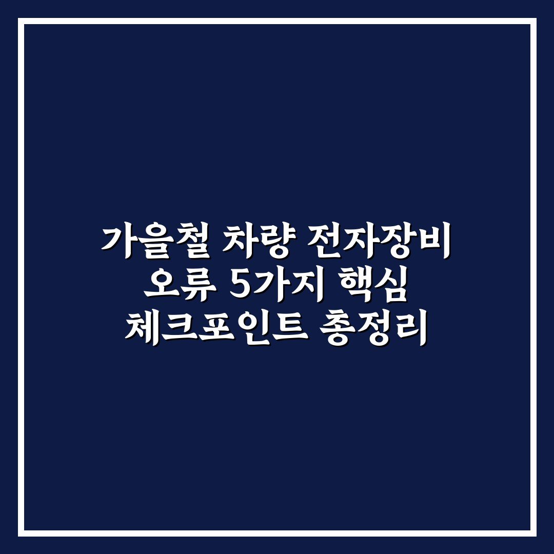 가을철 차량 전자장비 오류 5가지 핵심 체크포인트 총정리 2026년 03월 16일 작성자: 인포 가을철 차량 전자장비 오류 발생 원인과 점검 방법을 쉽고 체계적으로 정리해 안전한 주행을 위한 필수 정보를 제공합니다