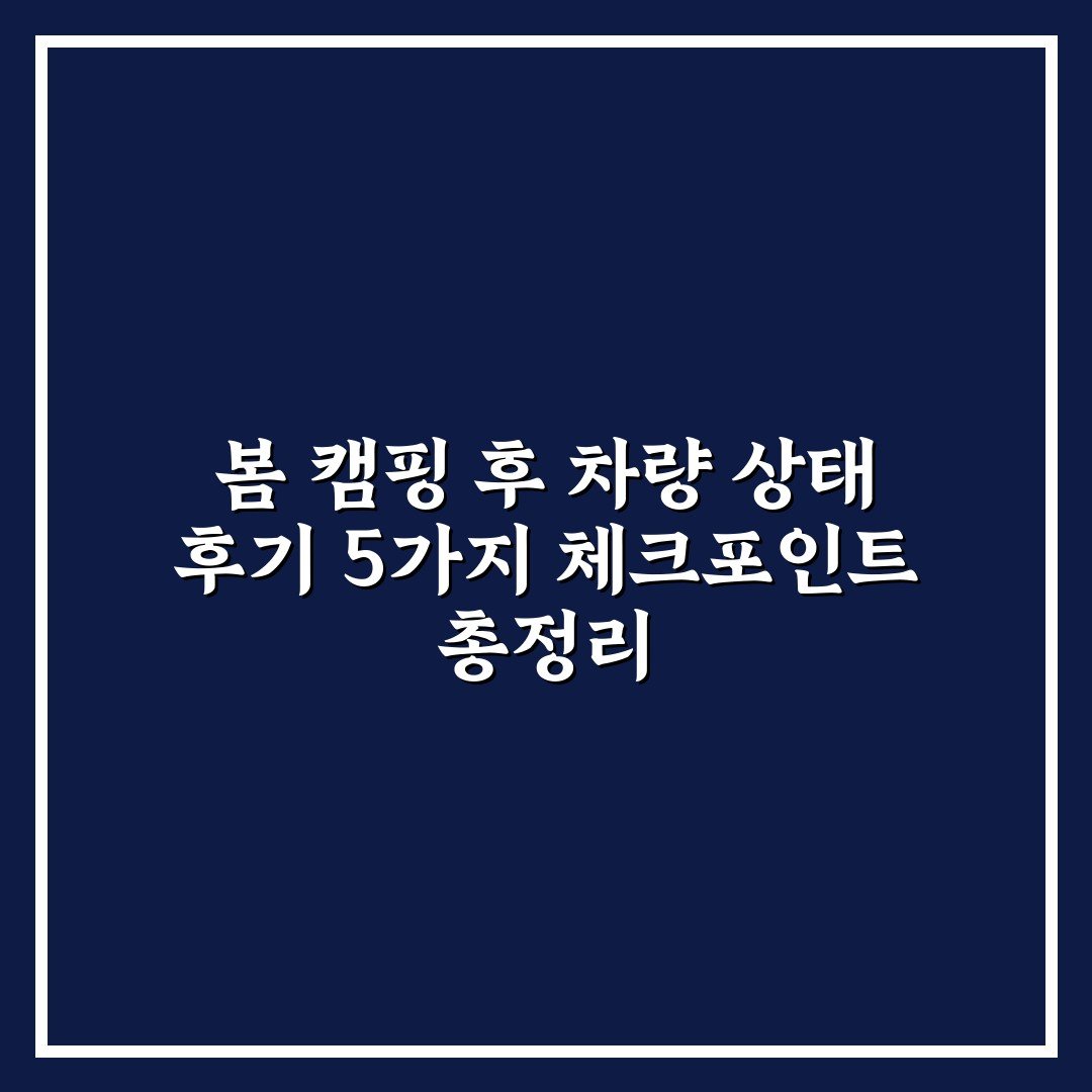 봄 캠핑 후 차량 상태 후기 5가지 체크포인트 총정리 2026년 04월 02일 작성자: 인포 봄 캠핑 후 차량 상태 후기를 통해 꼭 확인해야 할 5가지 체크포인트와 관리 팁을 알기 쉽게 정리해드립니다.