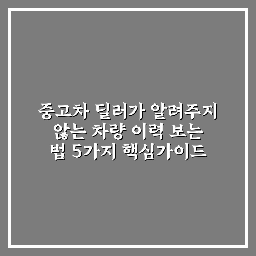 중고차 딜러가 알려주지 않는 차량 이력 보는 법을 통해 숨겨진 위험 요소를 파악하고 현명한 구매 결정을 내리는 방법을 알아보세요.