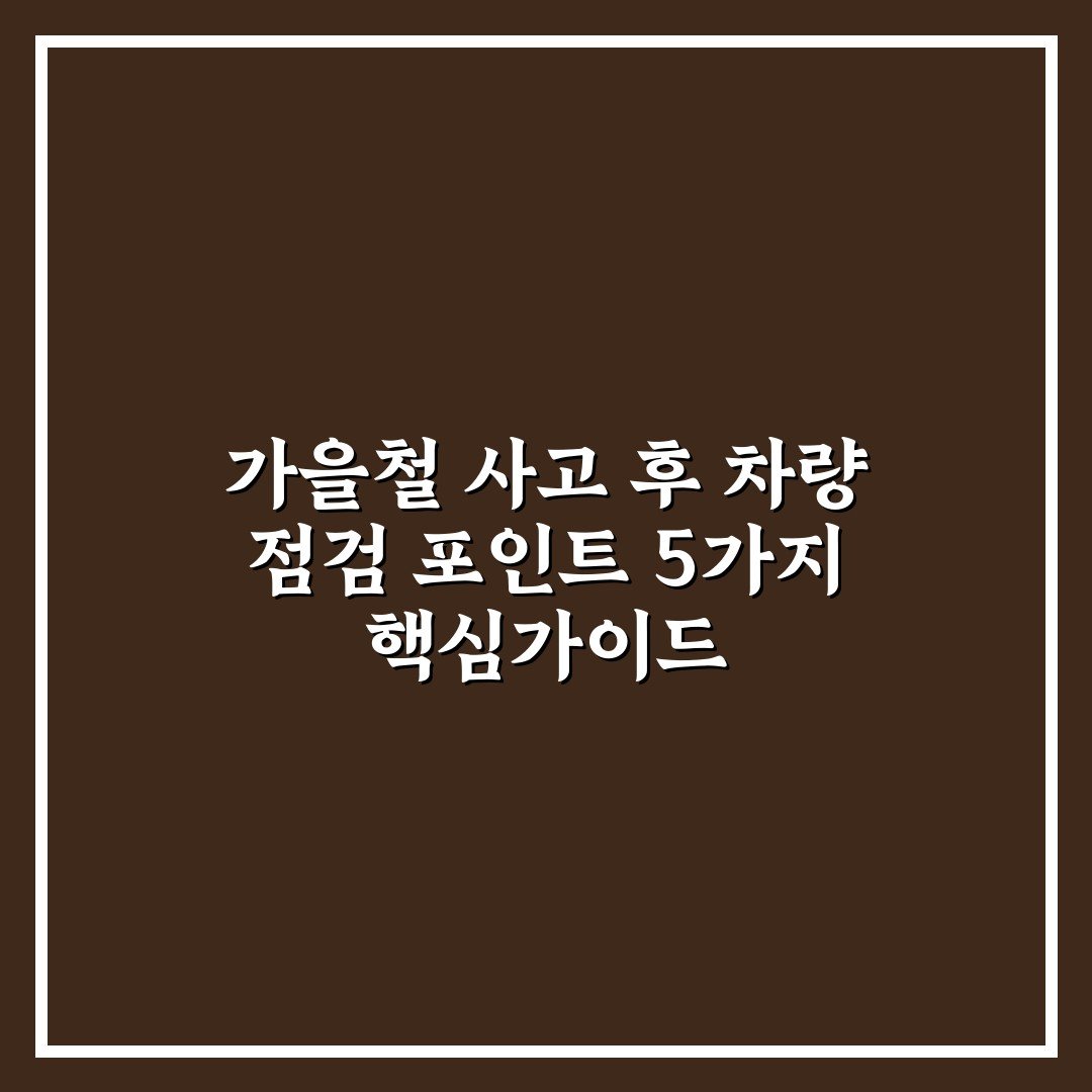 가을철 사고 후 차량 점검 포인트 5가지 핵심가이드 2026년 03월 23일 작성자: 인포 가을철 사고 후 차량 점검 포인트를 중심으로 안전 운전을 위한 필수 점검 사항과 실용적인 점검 방법을 안내합니다.