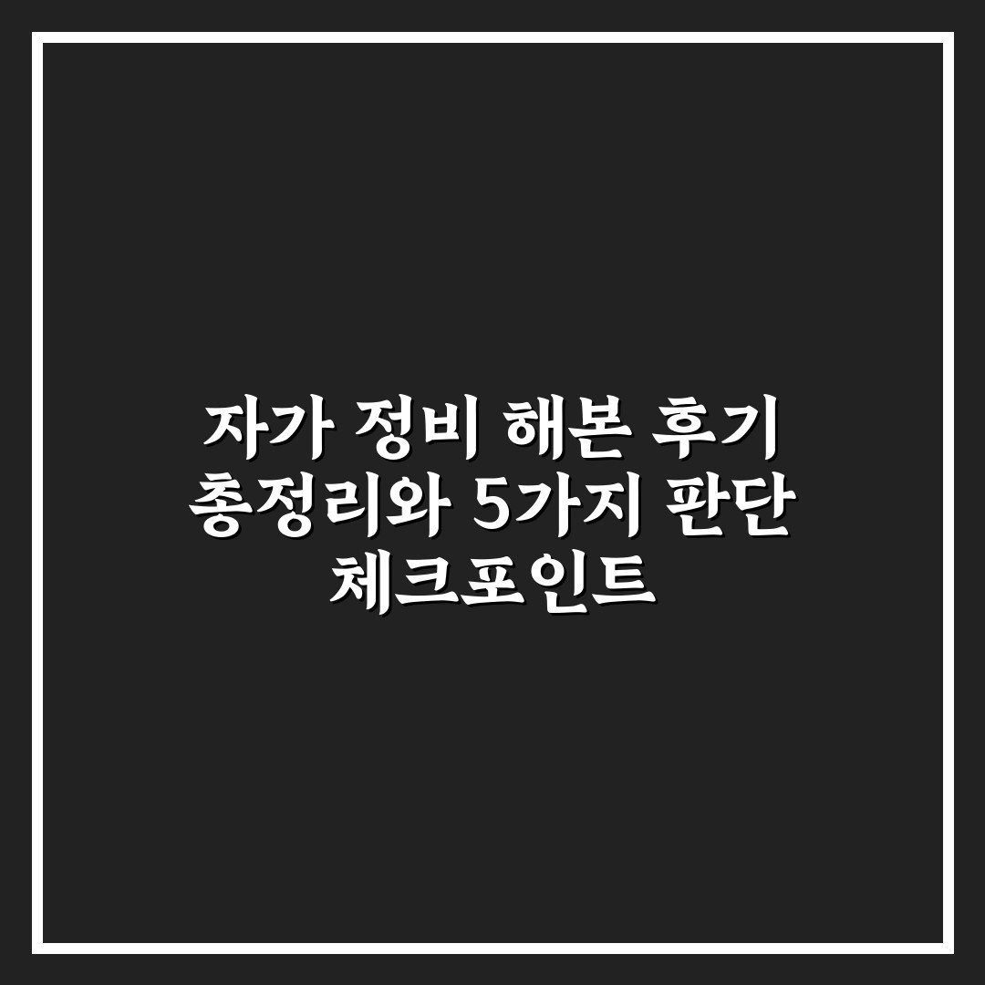 자가 정비 해본 후기를 통해 실용적인 경험과 함께 꼭 확인해야 할 5가지 판단 체크포인트를 한눈에 확인할 수 있습니다